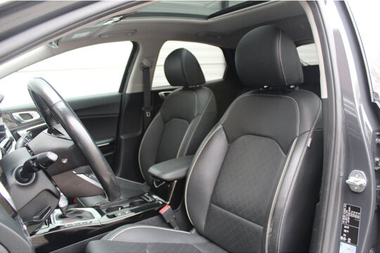Een auto als de Kia XCEED staat garant voor een hoog prestatieniveau en uitstekend comfort. Deze auto is uitgerust met een viercilinder motor en een automatische transmissie. Het lederen interieur ademt luxe, en het zit uiteraard fantastisch. Zelfs als het buiten ijzig koud is, kunnen zowel de bestuurder als de passagiers op de achterbank snel opwarmen, dankzij de verwarmbare stuurwiel en de achterbankverwarming. Van binnen lijkt het allemaal uitermate ruim dankzij de vrije inval van daglicht via het elektrisch bediende glazen panoramadak. Een praktische extra is de elektrisch bedienbare achterklep die opent en sluit met een druk op de knop. Tot de uitrusting behoren ook 18 inch lichtmetalen velgen, LED koplampen, extra getint glas, in delen neerklapbare achterbank, LED-achterlichten en verstelbare lendensteunen.