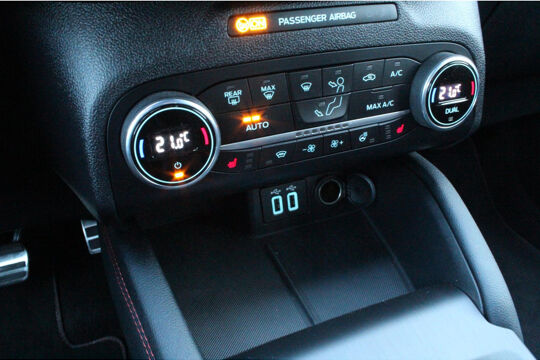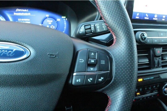 De automatische veiligheidssystemen in deze Ford fungeren als een extra paar ogen. En dat niet alleen, ze kunnen ook actief ingrijpen, om zo u en uw passagiers te beschermen. U hoeft onderweg uw hoofd nooit te draaien of uw blik te verplaatsen om dashboard-info af te lezen. De head-up display projecteert alles op de voorruit. U kunt rijden als een jachtpiloot. De actuele snelheidslimiet, een inhaalverbod en andere verkeersborden; de verkeersborddetectie ondersteunt u tijdens elke rit. Onbedoeld buiten de rijstrook raken wordt voorkomen door het Lane-keeping systeem. Ook helpen het dodehoekdetectie, accident avoidance system, forward collision warning system, hill hold functie, vermoeidheidsherkenning en bandenspanningcontrolesysteem, uw rit tot een veilige rit te maken.